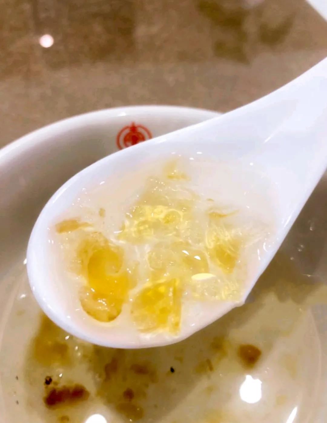 说起喝的就必须要说一说素心的桃胶羹了,桃胶是美容养颜的良品,桃胶羹第一口是清淡爽口的,舀一勺再喝第二口更觉得Q弹软糯,搭配上桃胶和雪燕,满满的胶质更加滋养,卖相也不赖。
