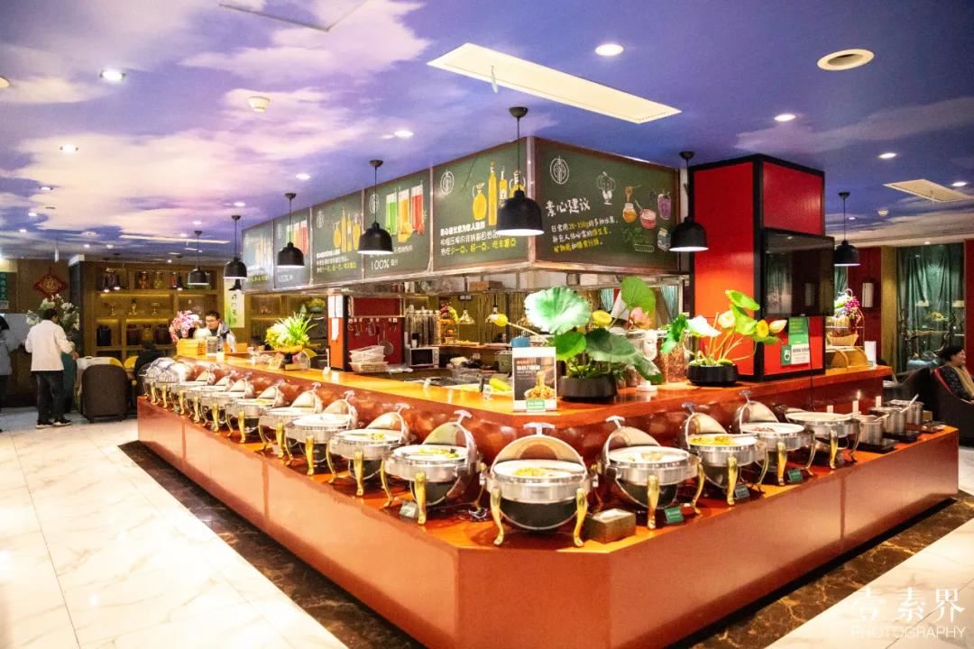 右边设有宴席包厢,进门以后空间很大,甚至能容纳十张十人的圆桌,原来这里不仅可以吃到自助,还能举办婚宴、乔迁宴、宝宝宴和寿宴,团队也能在这里聚餐。