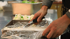 制作热菜的区域,厨师按响电铃端上来热气腾腾的素菜,闻着味道就已经让人垂涎欲滴了。