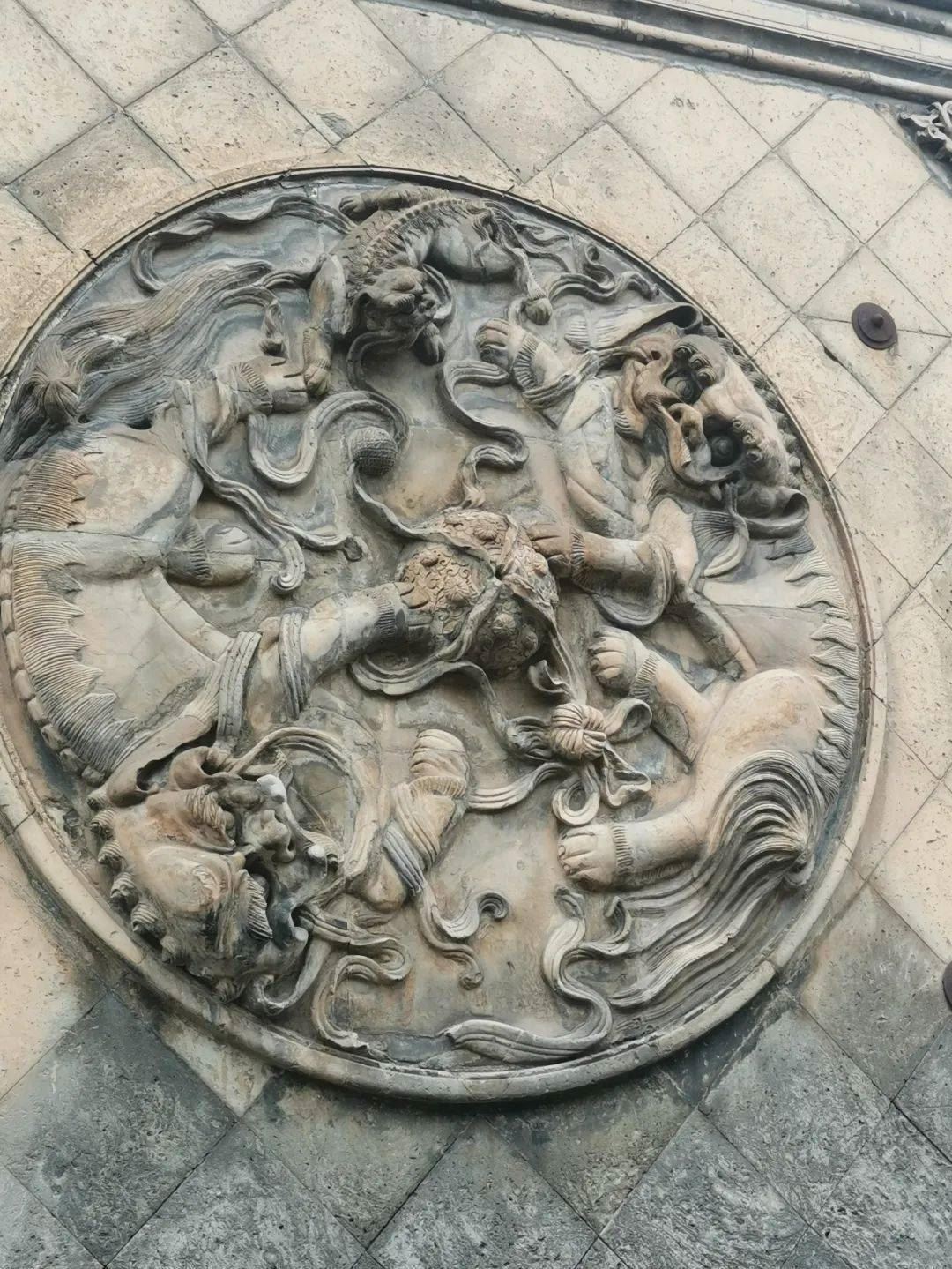 比如,我们此次去的王家大院,门对面的照壁中心雕刻着狮子滚绣球,寓意着好运在后头。