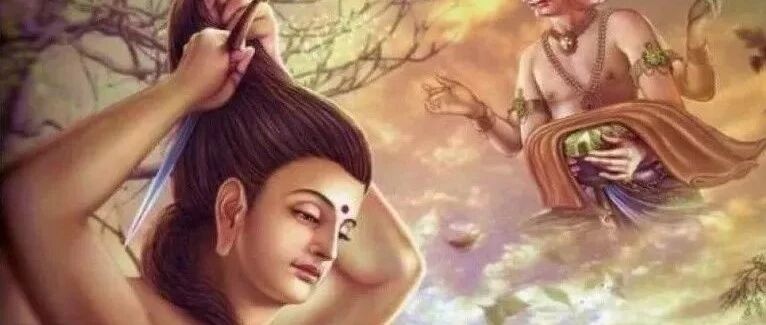 太子手持宝剑,自剃须发,对身边侍从说:“过去诸佛,为成就阿耨多罗三藐三菩提故,舍弃饰好,剃除须发;我今亦当依诸佛法。”这一日是二月初八。