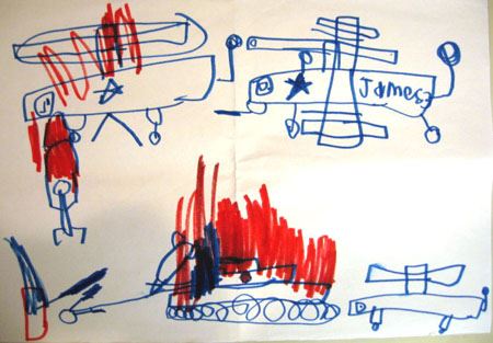 2001年5月1日,小詹姆斯刚满两岁,从这天开始他就经常半夜做恶梦,在梦里发出凄厉的惨叫声,惊恐地一遍又一遍大声喊着“飞机着火!小个儿逃不出去!”,一边手脚还又踢又抓,好像要奋力挣扎爬出着火的驾驶舱。布鲁斯和安竺雅刚开始吓坏了,在这之前小詹姆斯一直像其他同龄的小朋友一样活泼快乐又爱玩,他们不知该如何面对这个情况,也不知道小詹姆斯到底出了什么事。