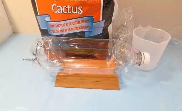 把剪下来的瓶底装一些水
