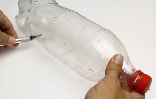 首先剪切掉塑料瓶的瓶底