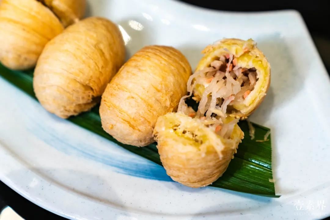 里面的萝卜便是来自于禾果自家的菜地,萝卜丝和椴木菇的组合,包上酥脆的外衣,吃起来又香又酥。