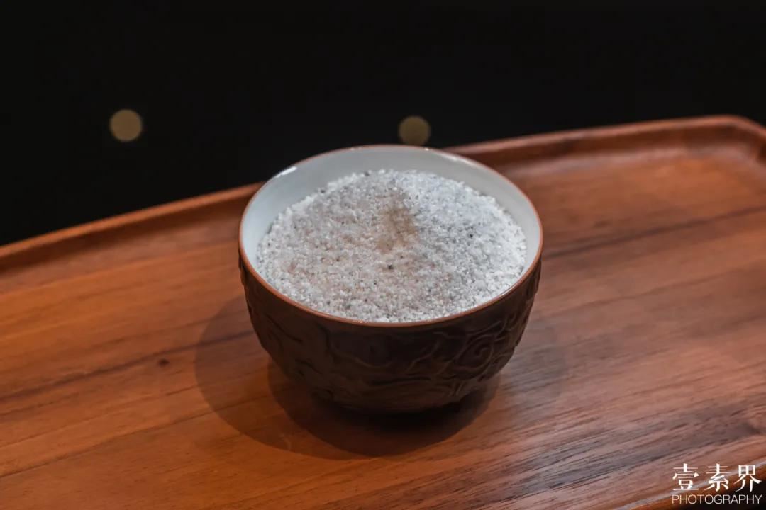 禾果厨房五宝之竹盐:将精选的海盐,放到特选3-5年的竹子里,用火去烤。烤制的过程中,可以将不好的物质透过高温挥发掉,竹子的微量元素跟甜度和香味,可以融进盐里面,这样烹调出来的菜品相对也会更健康,且更好味。
