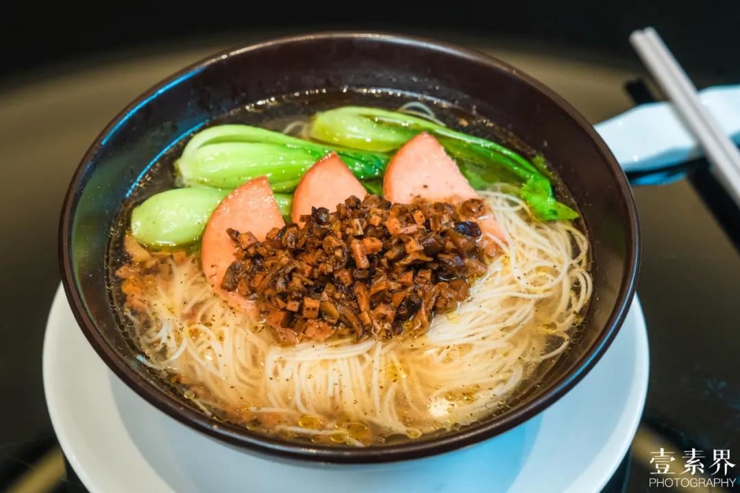 禾果的面条,会提前一周左右去现打面粉后制作成面条,过程中不放任何添加剂。一碗看似简单的素面,放上素火腿、椴木菇、腐竹和青菜后,让人顿生食欲。
