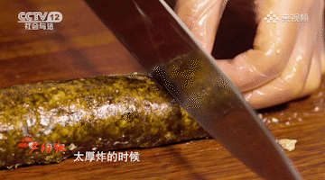 8.油煎:将切好的卷蘸点面糊,放入油锅中煎炸,炸到筷子一碰,外面很脆那种感觉就可以了。