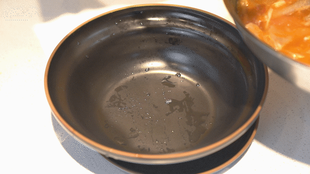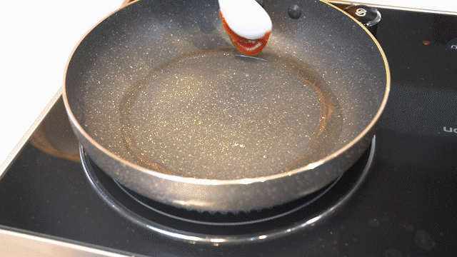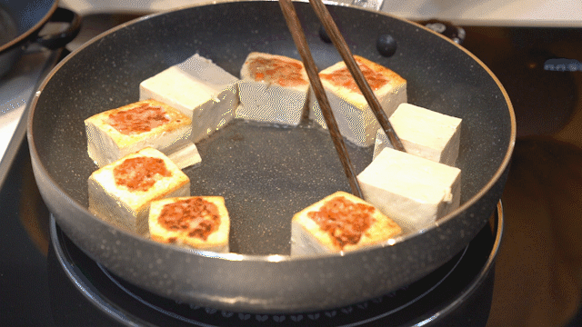 3.煎炸:起油锅,将豆腐倒扣放入锅中煎炸。
