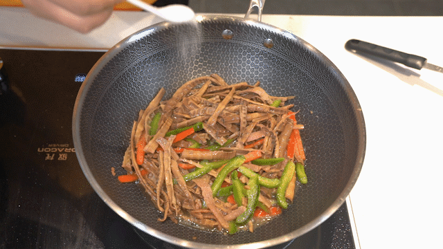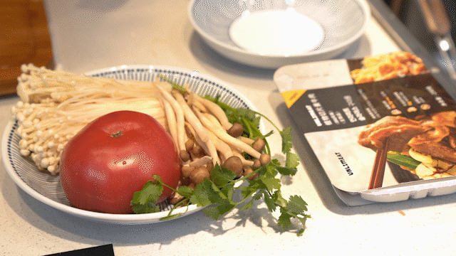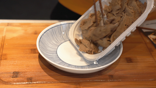 “我在做(菜)的过程中,发现这个新膳肉跟真的肉类,已经非常的接近了。特别是这个‘肥牛’,口感的话,这个素牛肉真的和牛肉完全没什么区别,口感又滑嫩。