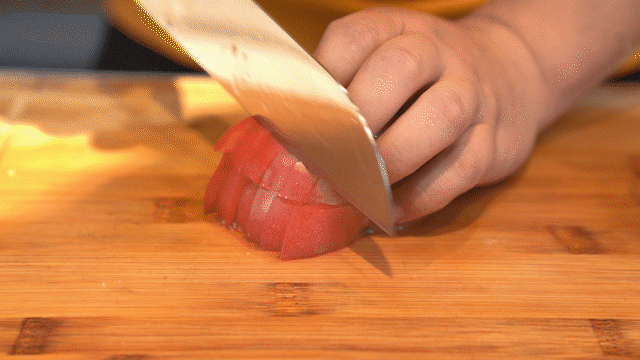 2.切配准备:将番茄切成小块,茶树菇切成小段