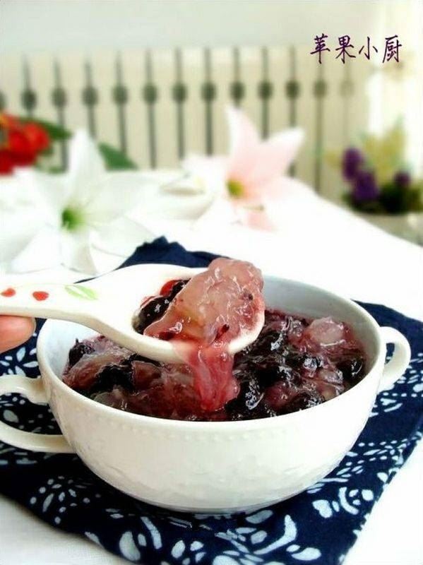 8. 拌匀食用。两者放在一起时间越长,银耳变得越紫。