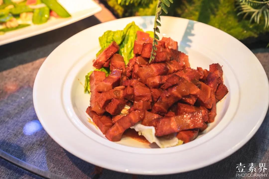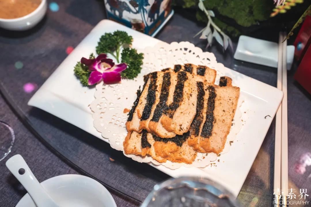 考虑到现场来宾中有很多并非素食者,所以在菜品的选择上,也会看到不少外形酷似肉类的菜品。