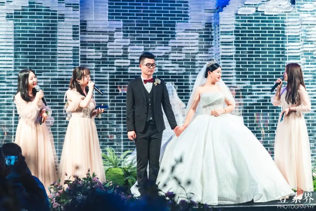 婚礼的证婚人,也是若水的老师,在证婚的同时送给了两位新人两个字:“队”字和“听”字,亦是祝福他们可以合美与圆满。