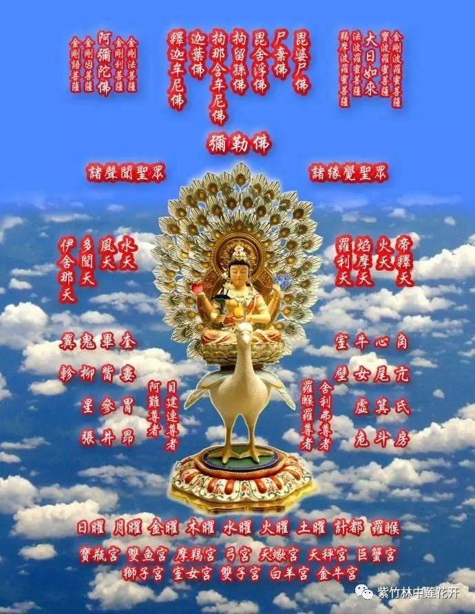 孔雀明王祈雨坛法即如此,它祈雨就是世出世间一雨润,只要你有所求,不论是世出世间,都可以随缘润泽于你,即使是往生净土,亦不离孔雀明王的慈悲摄取。