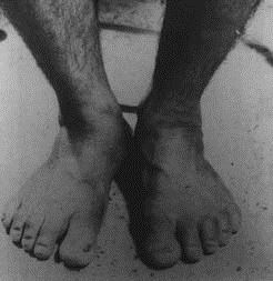 图四,图四中泰国受访对象的先天右大脚趾甲畸形。这个畸形对应他叔叔(译者注:受访对象自认的前世)右大脚趾的慢性溃疡。(图片来源:childpastlives)