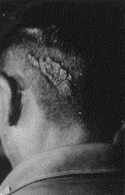 图三,这是一个在泰国男性头部的大型表皮疣状痣。他儿时说他记得他叔叔的生平,他叔叔被用大刀砍在头部砍死。(图片来源:childpastlives)