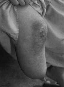 图九显示了一个印度男孩的单边手指先天缺失(指过短)。他记得另外一个男孩的生平,那个男孩把他的右手放在了一个饲料切割机里而失去了手指。大多数指过短只是中间指骨的缩短,在这个案例里根本没有指骨,手指仅仅是残余。单边指过短是非常少的案例,我还没有发现一个被报道的案例,虽然有一个整形外科医生同事给我看过他看过案例的照片。