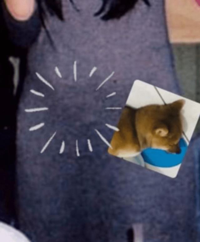想什么来什么,之后在她翻看孕期照时,忽然发现,某张照片的衣服上,好似隐约能看到衣服上有米肉的身影。