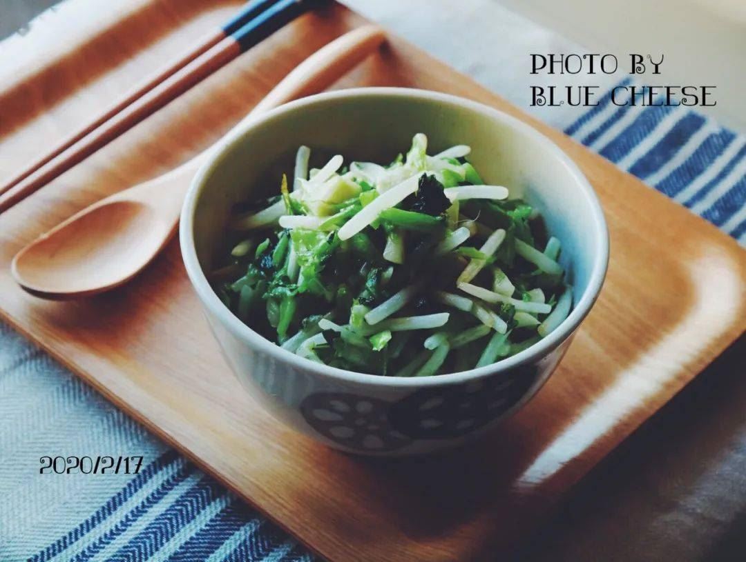 5. 凉拌绿豆芽就做好了,低脂又美味。