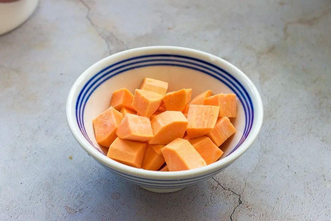 1.将地瓜去皮,洗干净,切小块备用;