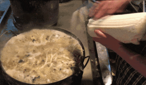 削出的面叶,一叶连一叶,恰似流星赶月,落入汤锅……