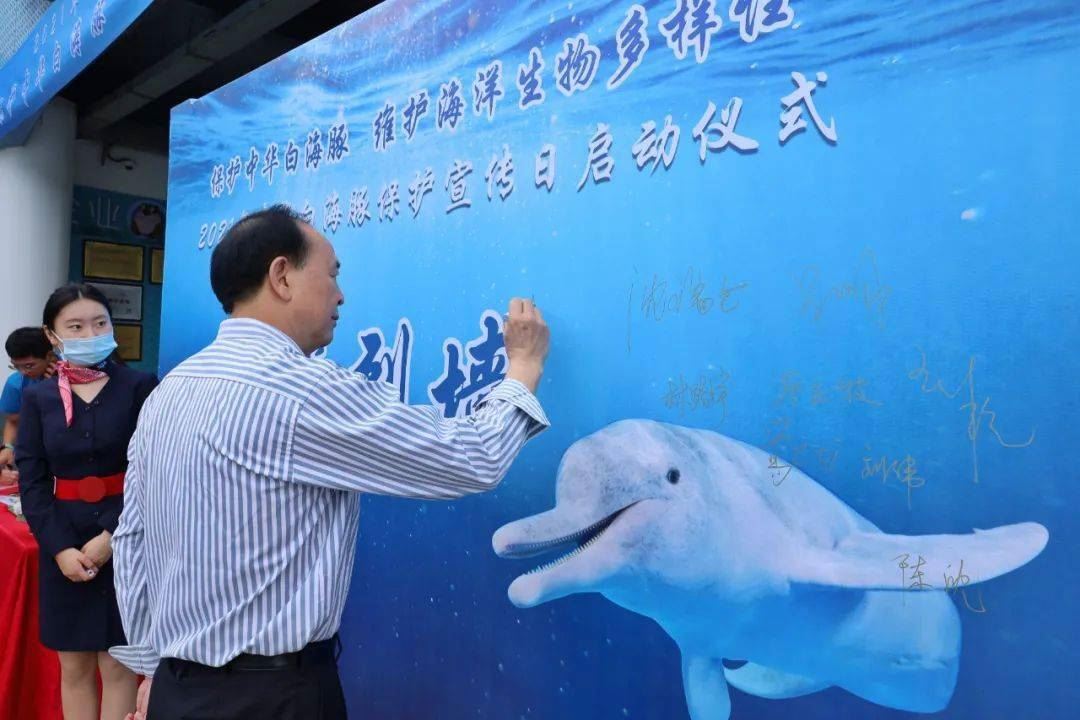 自2018年起,为了加强对中华白海豚的保护宣传,中华白海豚保护联盟确定每年的农历三月廿三(妈祖诞辰日)为“中华白海豚保护宣传日”。2021年农历三月廿三恰逢我国五一法定假期,为保证宣传活动的参与性和宣传效果,定于5月8日在全国范围内开展中华白海豚保护宣传日活动。上午9时宣传活动正式启动,农业农村部渔业渔政管理局、福建省海洋与渔业局、厦门市自然资源和规划局、思明区人民政府领导先后致辞,随后厦门滨海小学学生带来中华白海豚之歌——“换我来守护你”,启动仪式上厦门中华白海豚文昌鱼自然保护区事务中心与厦门中级人民法院生态庭签署“厦门中华白海豚及栖息地保护合作机制协议书”,涉海工程单位代表厦门路桥集团宣读了保护中华白海豚倡议书,厦门国际学校的孩子们通过义卖活动筹集的资金向厦门中华白海豚保护组织进行了捐赠。启动仪式之后,厦门主会场还开展了中华白海豚保护公益跑、中华白海豚大讲堂、组织参观火烧屿中华白海豚救护繁育基地、中华白海豚保护区海漂垃圾清洁等活动。