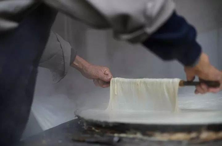 开江豆笋制作过程特别繁琐,不仅需要耐心,更要依靠手艺。只为最纯粹的美味,制作过程包括:选豆 → 泡豆→磨浆→过滤→烧煮→提豆笋→烘豆笋→切豆笋→烤豆笋。