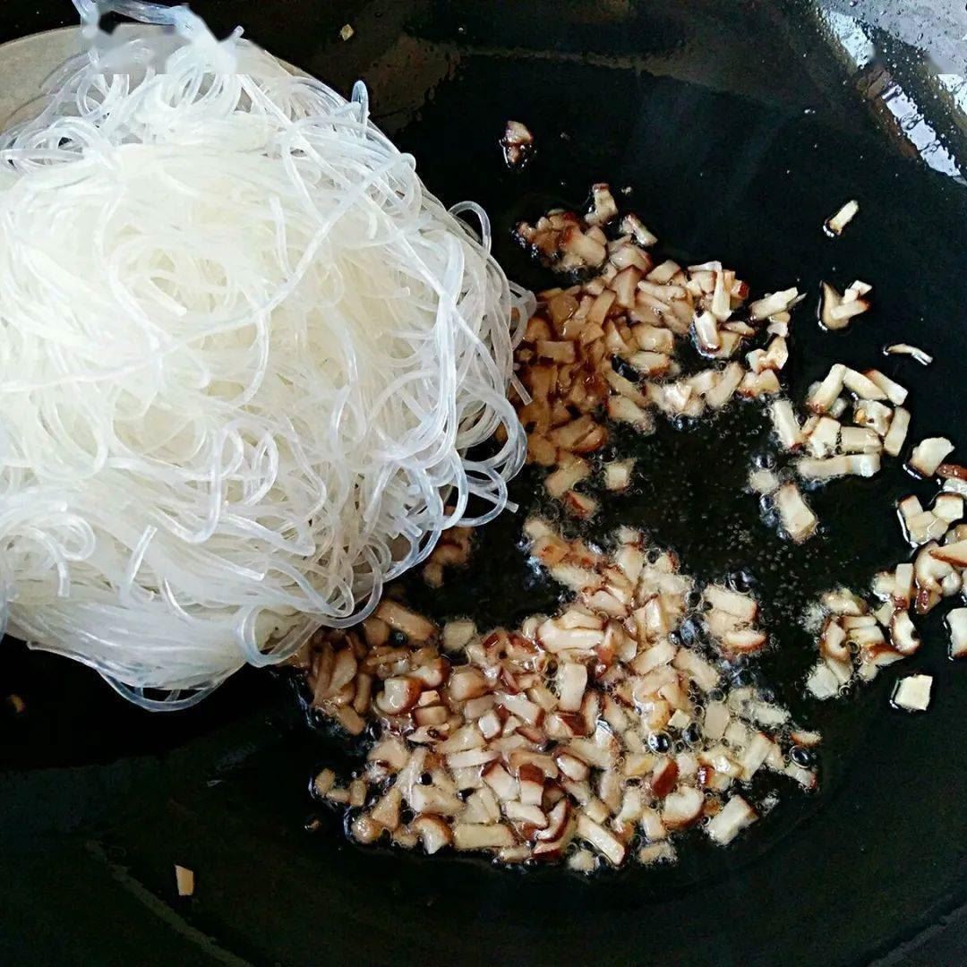 6.中火快手翻炒。粉丝一定要沥干水,炒时动作要快,不然容易粘锅哦!