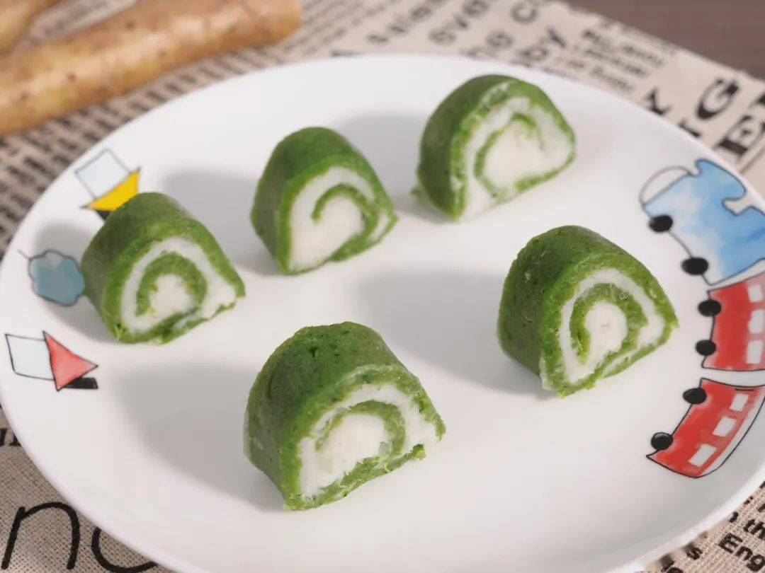 ⑩山药 菠菜卷就做好啦~摆盘,开吃吧~