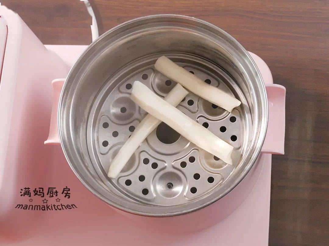 ②山药去皮,蒸熟(或带皮蒸熟,再去皮);