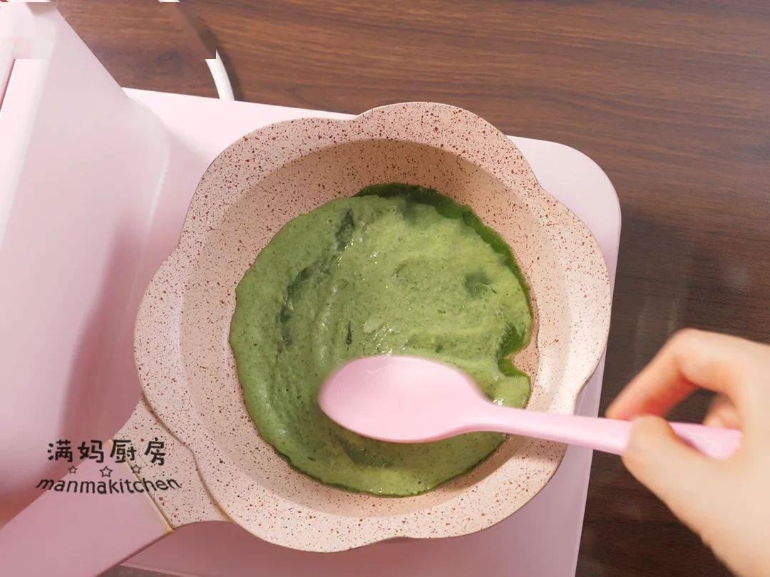 ⑦锅中加少量植物油,把面糊均匀的摊在锅里,做成薄饼;