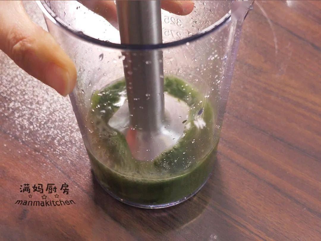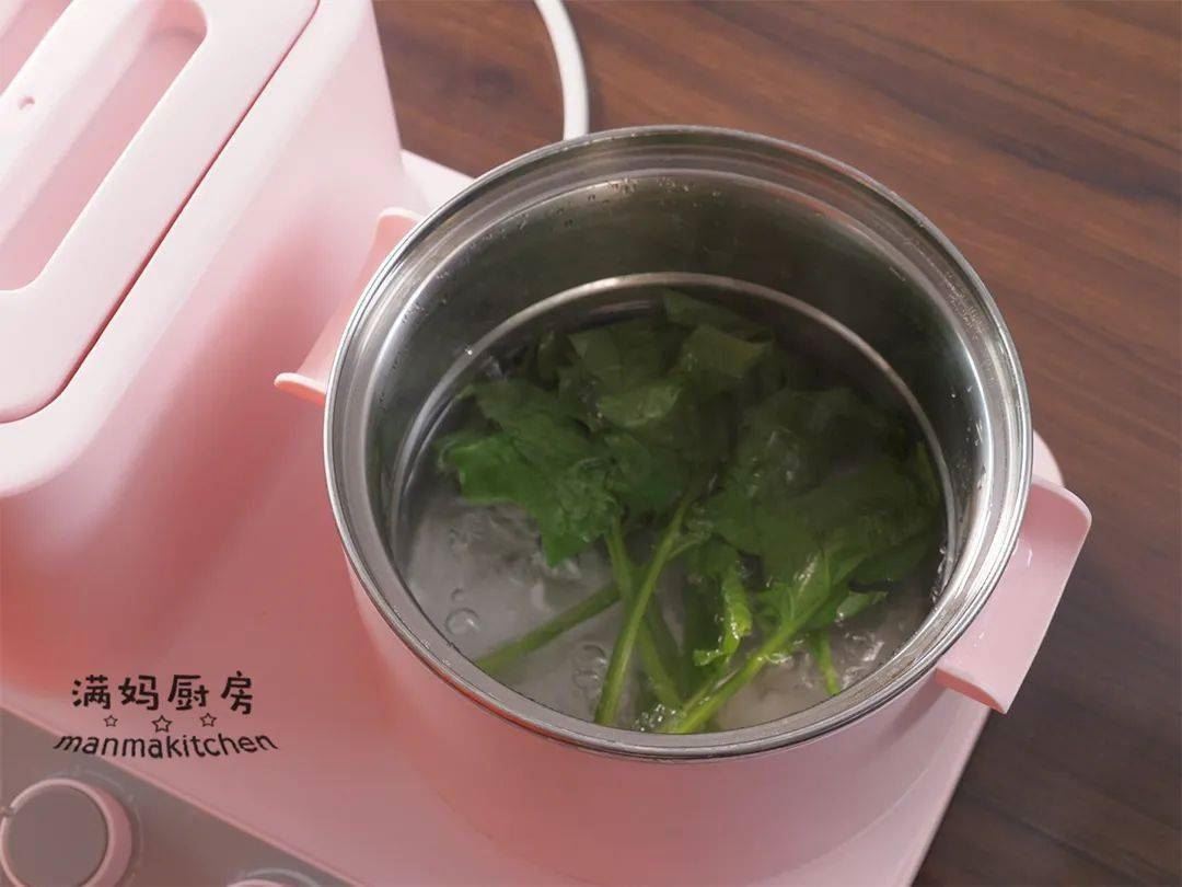 ③焯水后的菠菜放入容器中,加少量水;