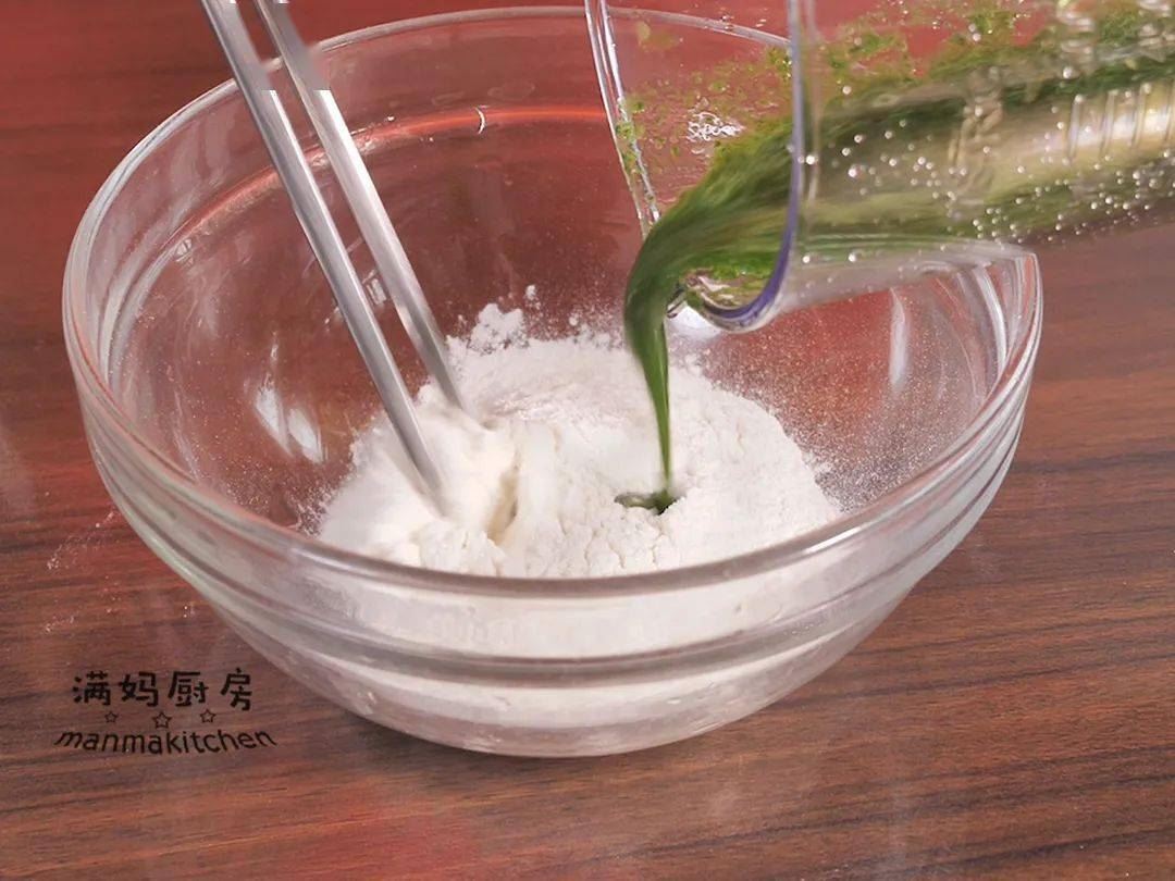 ⑤准备一个容器,把蔬菜汁和面粉混合;