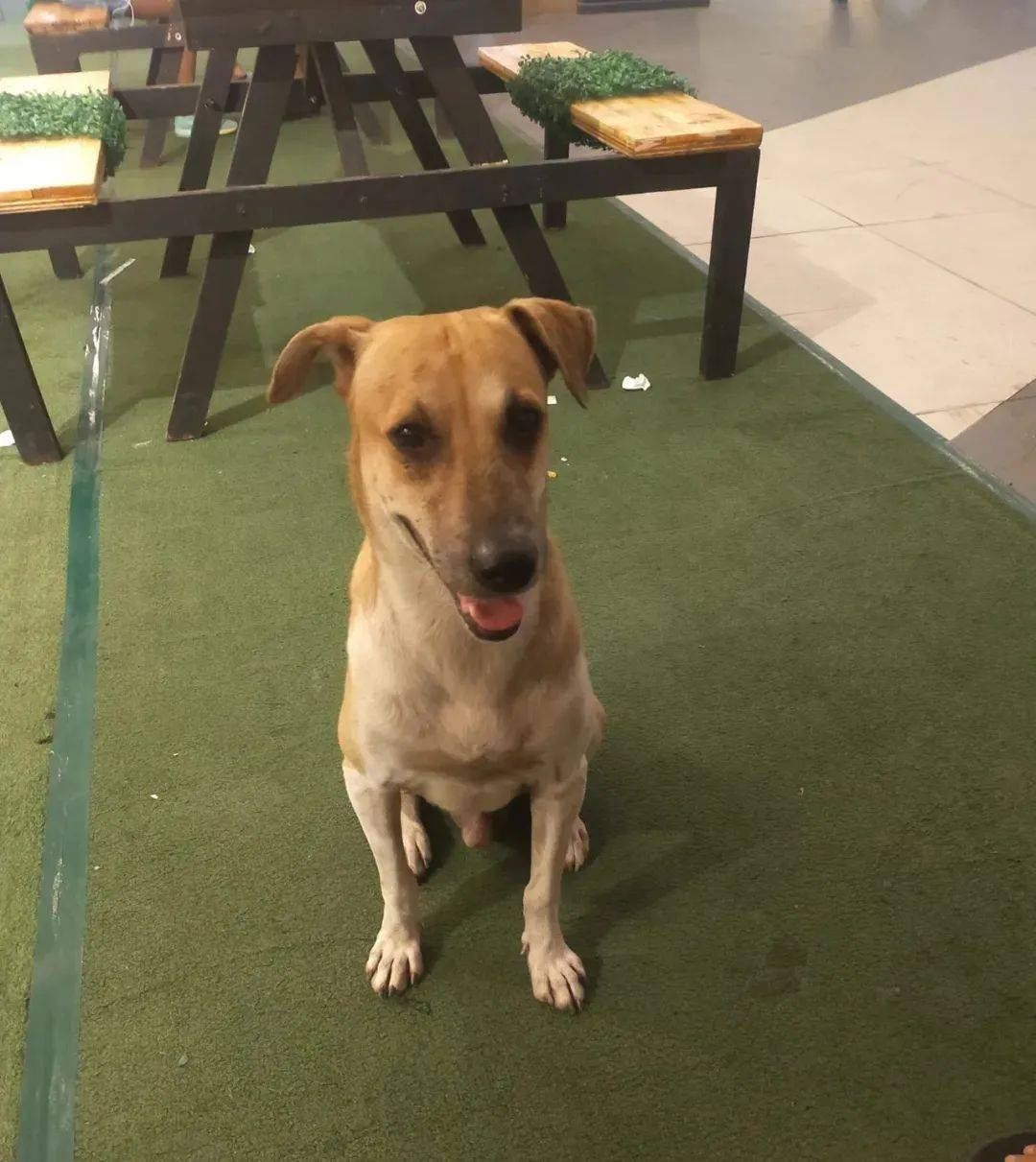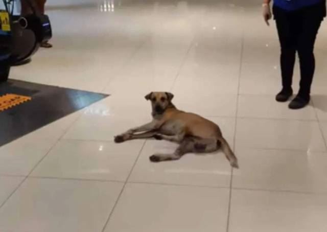 菲律宾一网友去当地购物中心闲逛时,意外发现有一个同样来“闲逛”的...流浪狗。