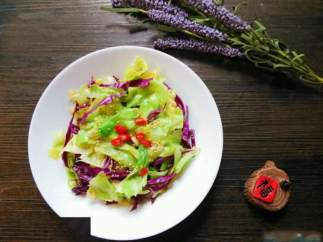 1. 紫甘蓝去硬梗,洗净切丝。小米椒洗净切小段;