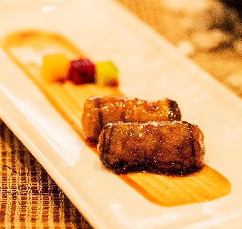 别致小景,假山、菩提树,脱离城市的喧嚣……这些汇集在一起,就是位于机场路的缘起素膳。两层空间被打造得凹凸有致,一层敞开式就餐环境,二层私密安逸,环境素雅古韵,意境清幽。