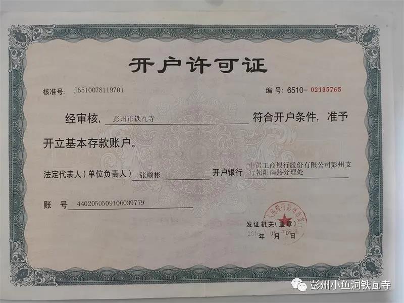 对公账户名: 彭 州 市 铁 瓦 寺对公账号:4402 0505 0910 0039 779开户行:中国工商银行股份有限公司彭州支行朝阳南路分理处