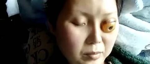 视频中这位长着鱼眼女人何依依,在2014年5月(往生前几日)梦到‘鱼’及其他众生向其讨命在半梦半醒之间猛烈的抠挖眼部,以至眼球与眼眶严重脱离,惨状可怖,师父为她:“何依依你以前造了什么业?这眼珠子都冒出来了......?