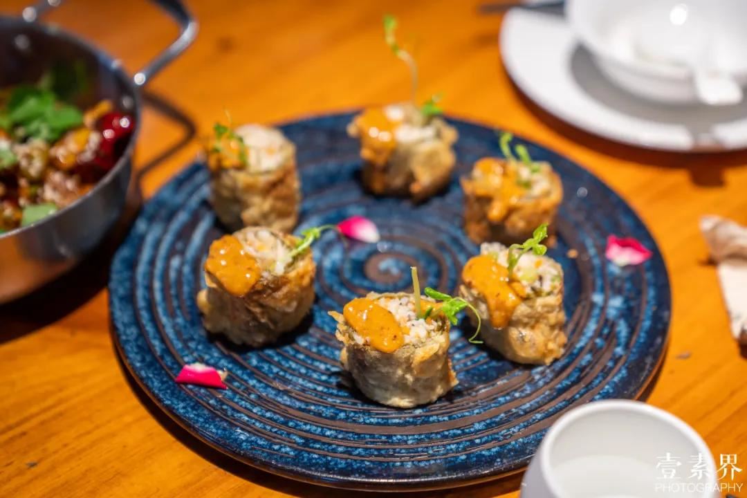我们选的是莲藕,比较爽口,然后吃的都特别脆,然后通过豆腐皮把它卷起来裹上面糊,炸至金黄后卷起来,加上我们自己调的一个日式的麻酱汁。