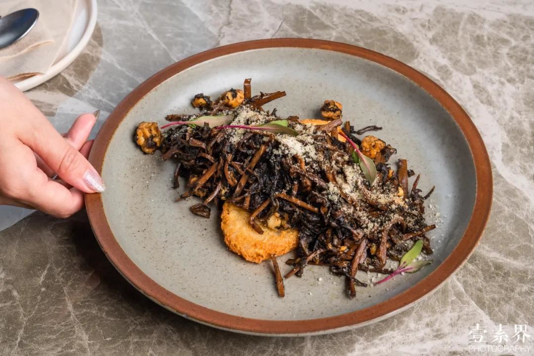 这道菜的松茸是西藏过来的,相比云南松茸会更鲜香,搭配上自制的酱汁,将松茸的鲜香完全调动了起来。