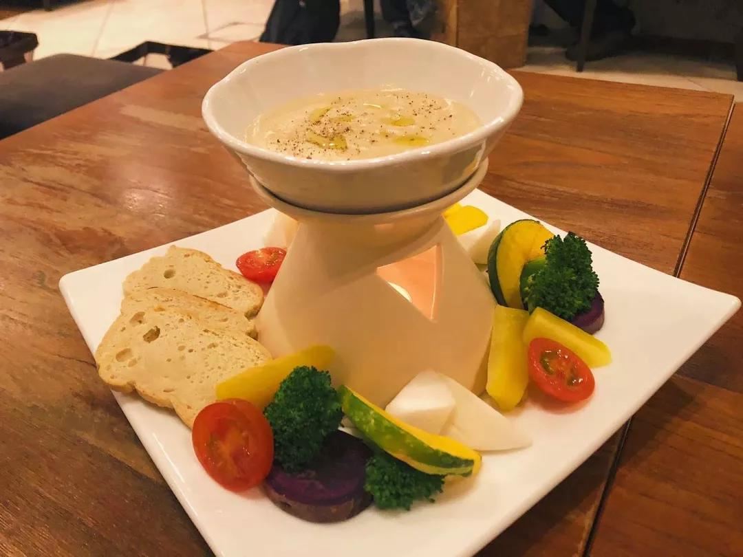 他们不仅会有一块一块冷制的芝士,还会把腰果芝士做成腰果芝士火锅,冬天的时候他们把芝士融成酱,蘸取大米做的面包、蔬菜、无麸质的脆片(等),寒冷的天气就特别温暖,又很浓郁,真的是一道很治愈人心的食物。