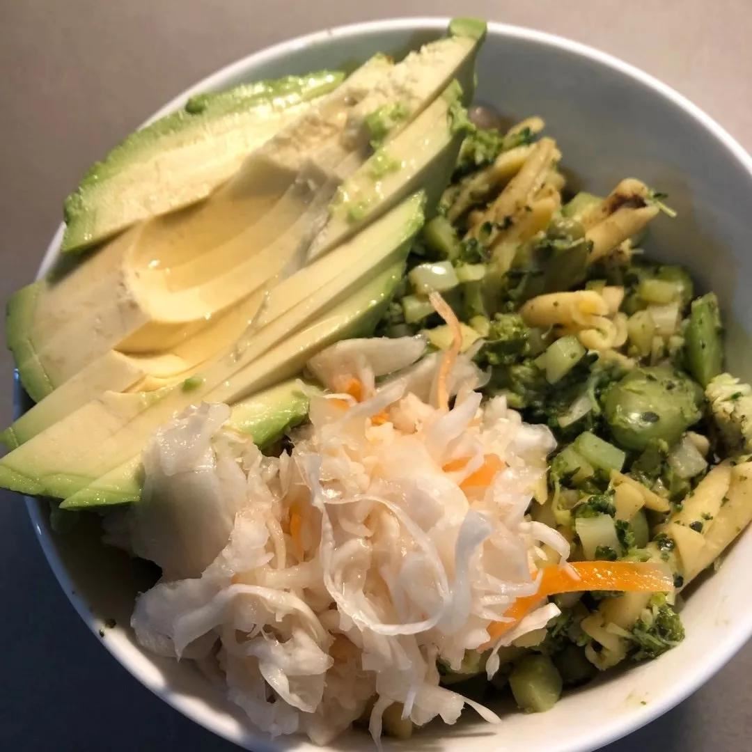 “我的餐盘一定会有这几种元素,首先是(当季的)绿叶蔬菜,是非常重要的维生素和纤维来源。其次就是健康的油脂,包括坚果、牛油果,以及亚麻籽之类的种子。