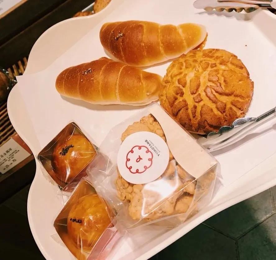 在台北我特别喜欢一家纯素面包房——一禾堂,里面有我们日常吃到的好吃面包的纯素版,比如说海盐奶油卷,他们就会有海盐豆乳卷,像菠萝包他们也会有椰子油、豆乳做的菠萝包,还有纯素蛋黄酥,用南瓜和绿豆做里面的蛋黄,但是我觉得口感什么都做得很逼真,特别香,特别好吃。