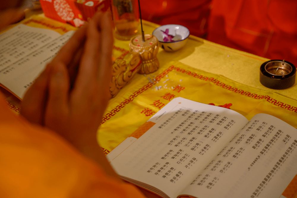 随后,大众跟随法师同诵《药师琉璃光如来本愿功德经》,祈愿解除众生身心病苦,究竟解脱轮回。