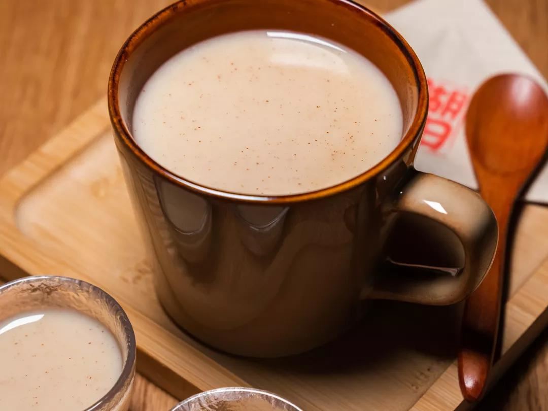 这锅汤底的制作,从早上八点开始。慢火熬煮,随着咕噜咕噜的热气,菌类的鲜美、山药芋头的香浓,与花生、黄豆等坚果豆泥逐渐融为一体。