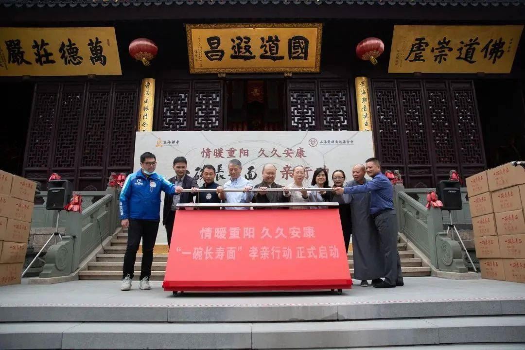 上海玉佛禅寺及上海觉群文教基金会发起“一碗长寿面”孝亲行动,计划于2021年至2023年九九重阳节期间,联合上海市慈善基金会、上海市老年基金会,为沪上老人送出“一碗长寿面”礼盒,并优先赠予孤寡、残疾、高龄以及退役老兵、劳模等老年群体。