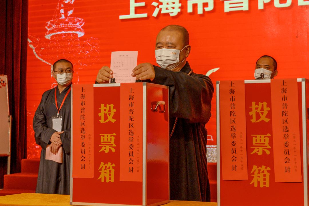 上海玉佛禅寺寺务处副主任慧觉法师担任本次选举会议主持人。上海玉佛禅寺寺务处副主任体廷法师担任本次选举总监票人,宣读投票选举的注意事项。