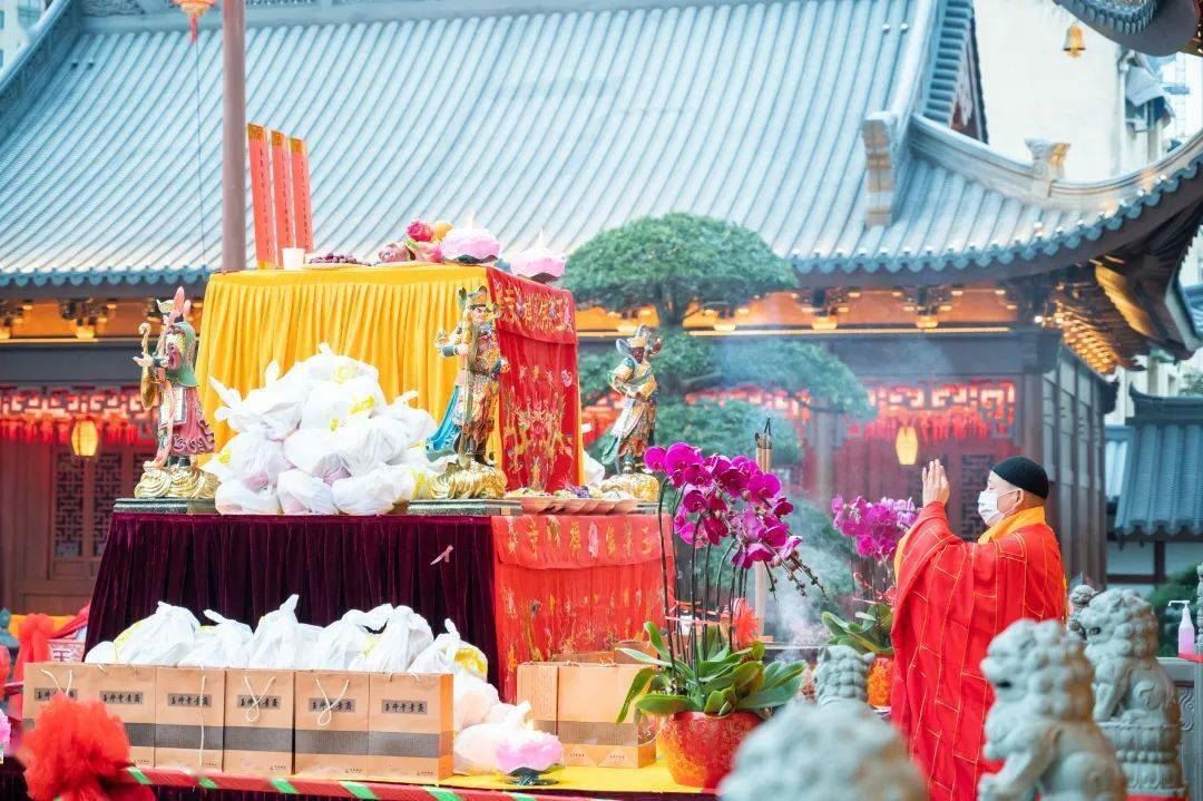 供佛斋天仪式上,法师带领斋主们上香、诵经、礼拜,以示虔诚之心;并以种种香、花、灯、果、清净饮食等,供养十方三宝,及护法诸天,如大功德天、大辩才天、坚牢地神、大梵天王、帝释天王、四大天王等等。