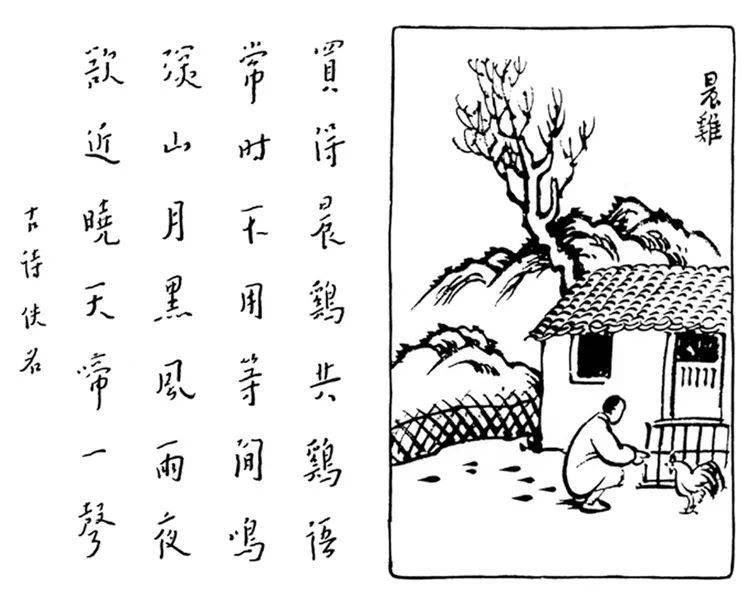 丰子恺先生这幅“晨鸡”漫画,画面非常有趣。